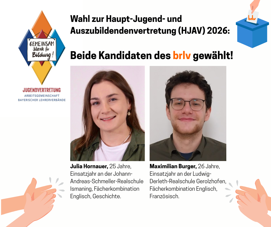 Mit Julia Hornauer und Maximilian Burger gehören ab sofort auch zwei Realschullehrkräfte aus dem brlv der HJAV an, die künftig die spezifischen Belange der Realschulen engagiert vertreten.
