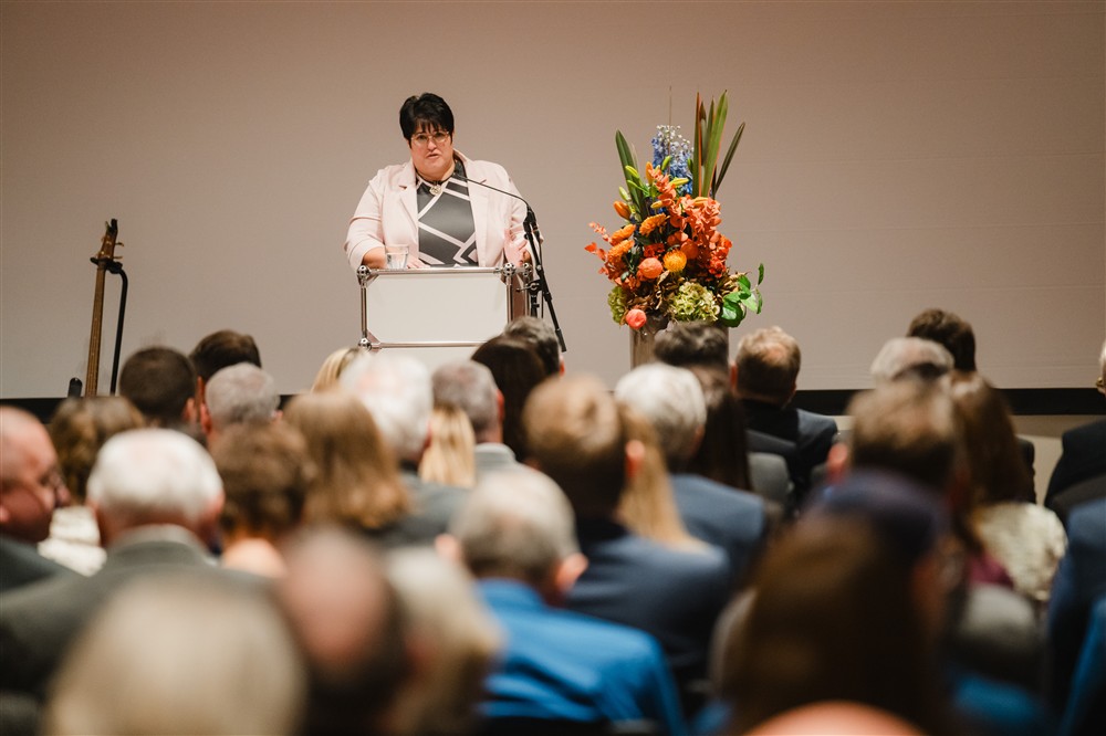 Kultusministerin Anna Stolz würdigt auf der Festveranstaltung die Realschule als tragende Säule des bayerischen Bildungssystems